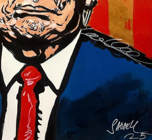Prohlednout celou aukciKlasické dílo od Patrika Saudka. Ve své tvorbě abstrahuje inspiraci, kterou čerpá ze způsobu tvorby svého otce, ve spojení s pop artovou vizualitou a náměty. Saudek svými obrazy komentuje současné politické a společenské dění. Olej na plátně, nerámováno, rozměry 50 x 70 cm. Signováno vpravo dole "Saudek 25".